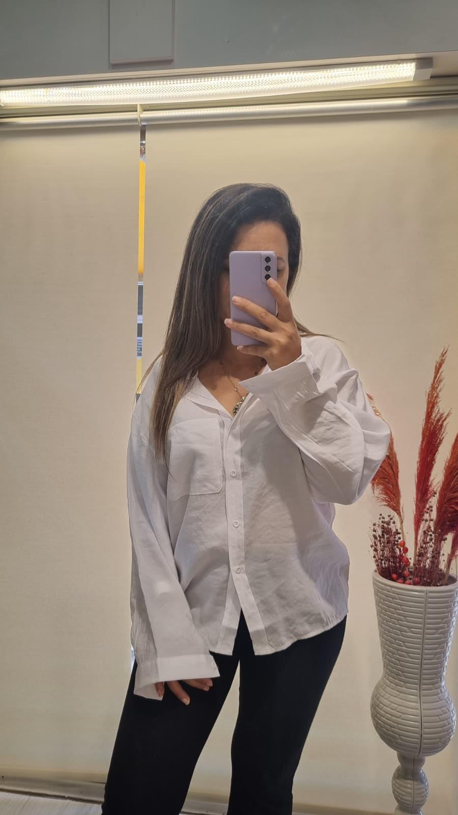 Organik Kumaş İpek Keten Beyaz Gömlek
