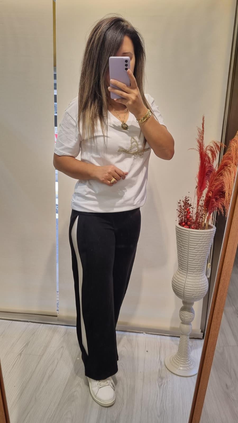 Modal Kumaş Şerit Detay Siyah Pantolon